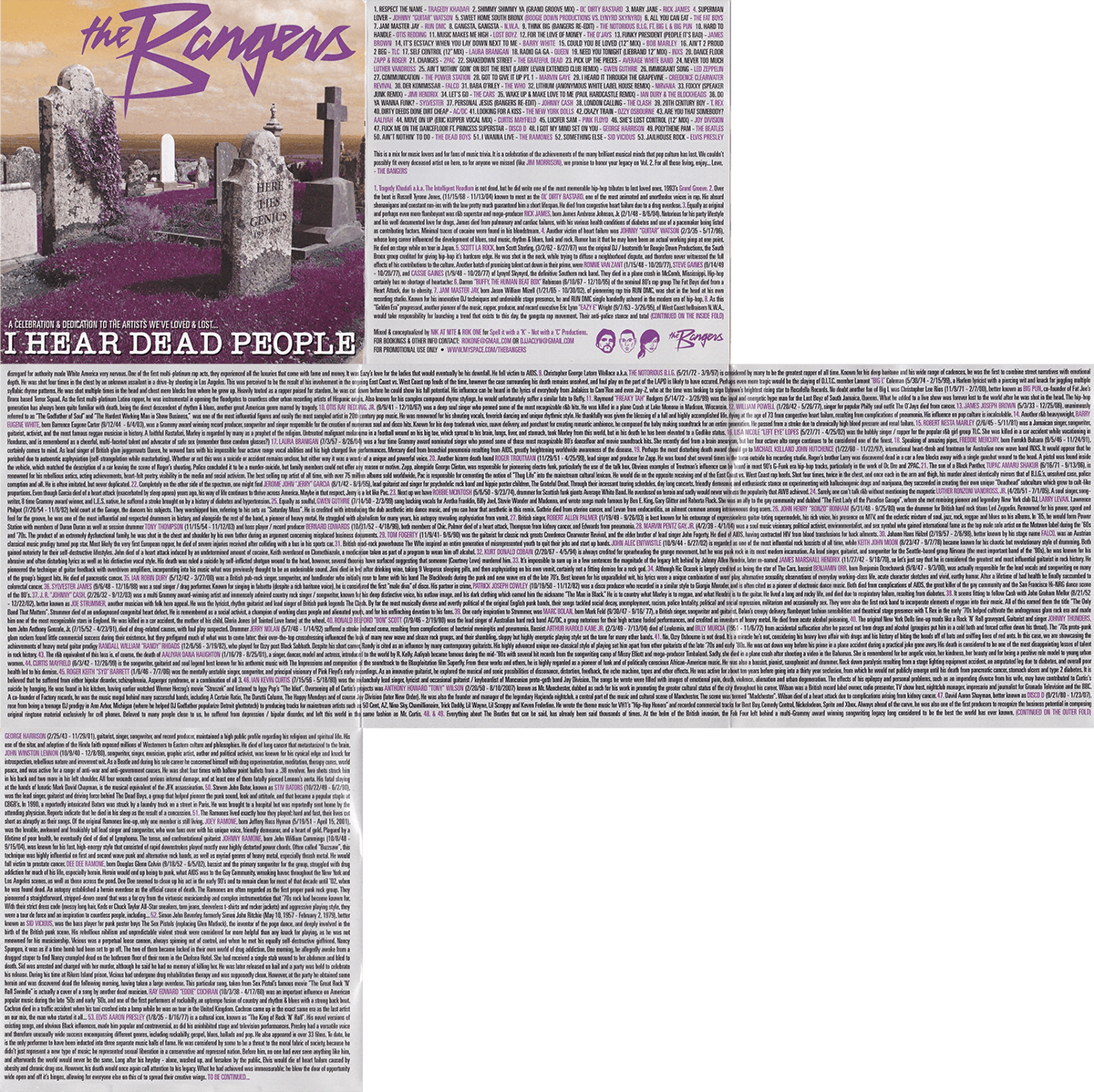 I Hear Dead People was the last mixtape of The Bangers. Like all of our mixtapes it was a labor of love. 53 tracks of nearly every genre imaginable from some of the most iconic musicians ever to do the thing.